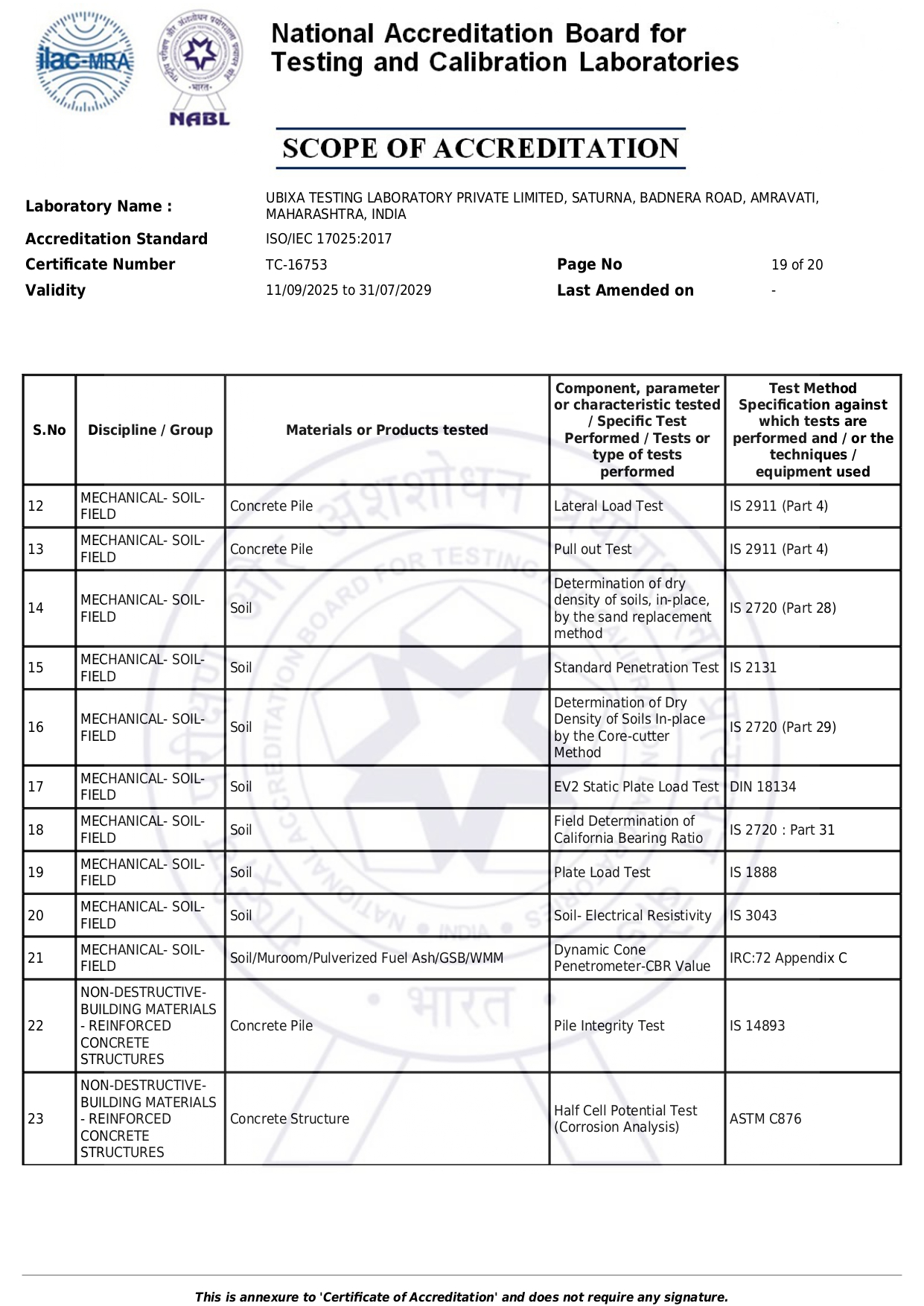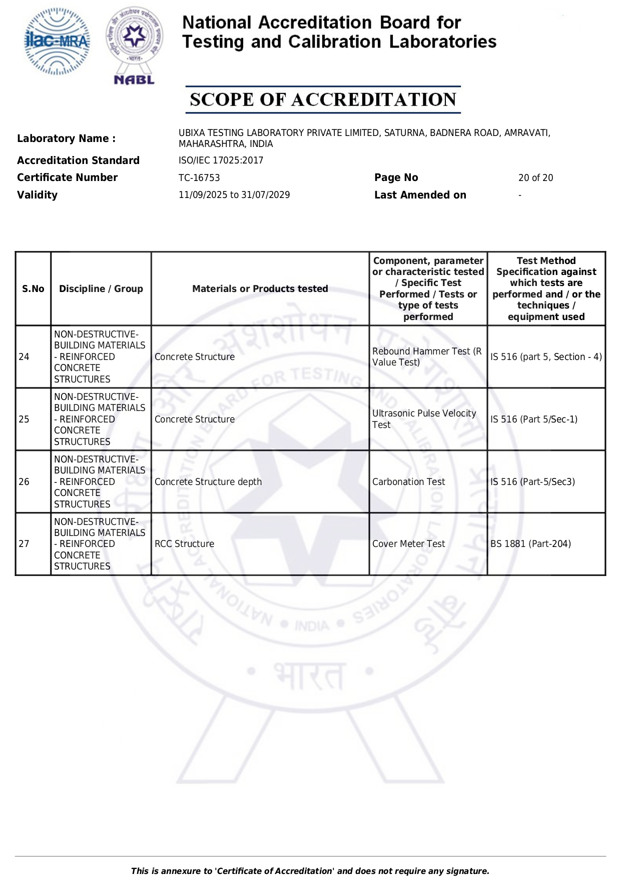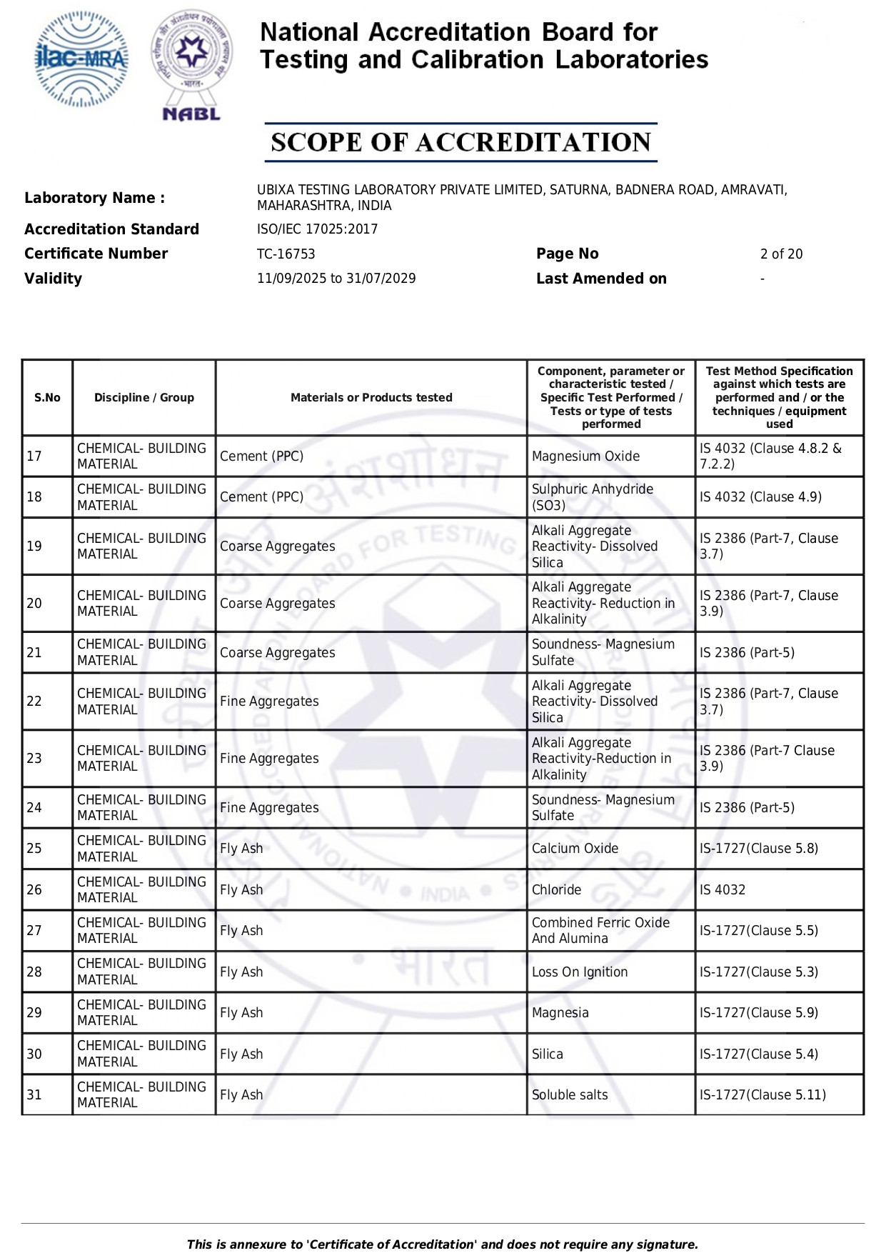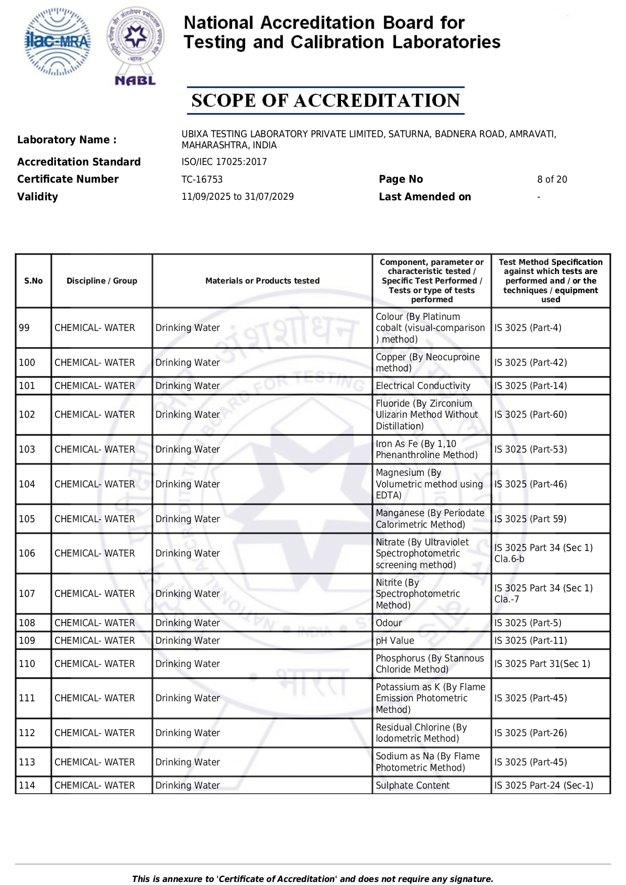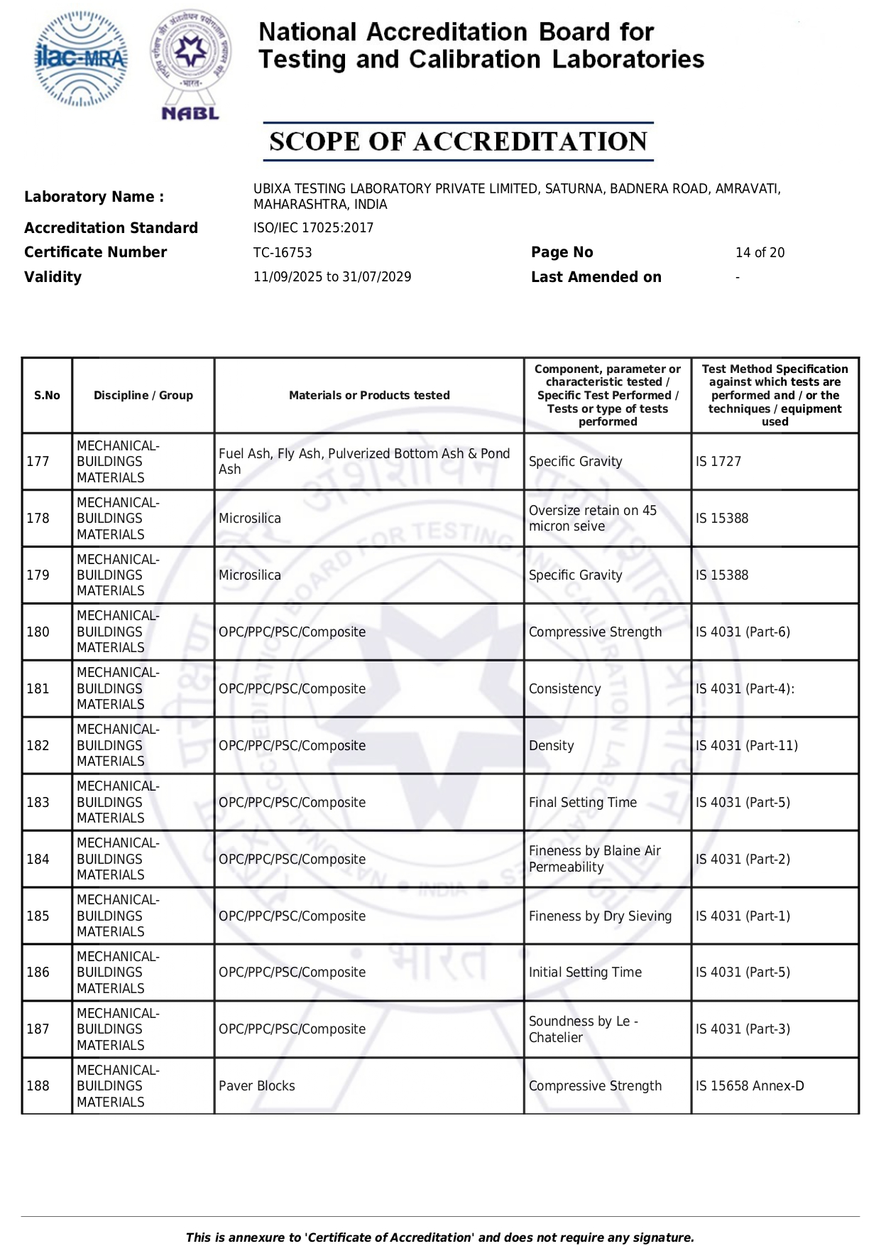 UBIXA (Testing Laboratory) is NABL Accredited renowned amongst customers for its prompt, dependable, and trustworthy testing services for over 250+ physical and chemical testing parameters. The laboratory covers a comprehensive range of tests, such as: